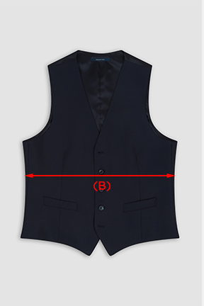 Fél derékvonal (B): A zárt gombos mellénytől, egyik oldal felől a másik oldal irányába az első gomb alatt.