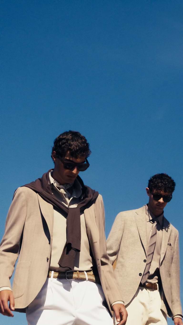 A világos tónusokból és természetes árnyalatokból álló tavaszi paletta kiemeli az ikonikus ruhadarabokat, amelyeket kortárs hozzáállással értelmezünk újra. A strukturált, de könnyű blézerek, a pamut és selyem pulóverek és a sokoldalú kiegészítők élénk és dinamikus textúrával tűnnek ki a finom textúrák és a dombormintás felületek között.